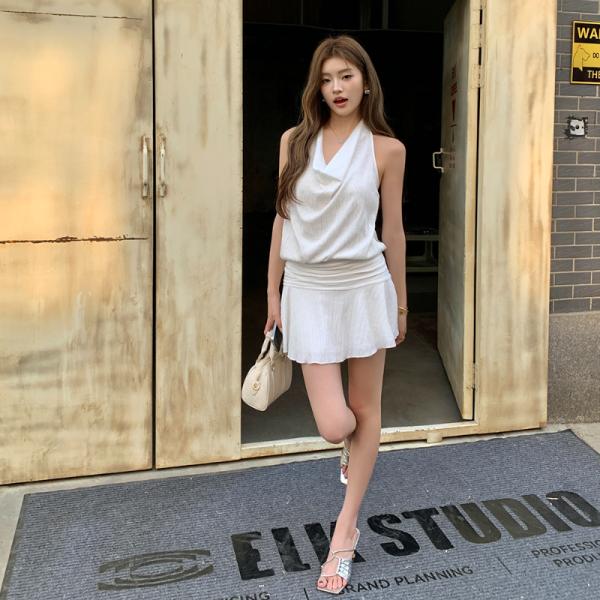 Korean style cool, simple and high-end | halter neck sleeveless dress