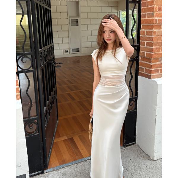 French elegance | Satin sleeveless waist dress | Temperament goddess style long dress