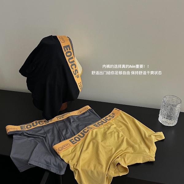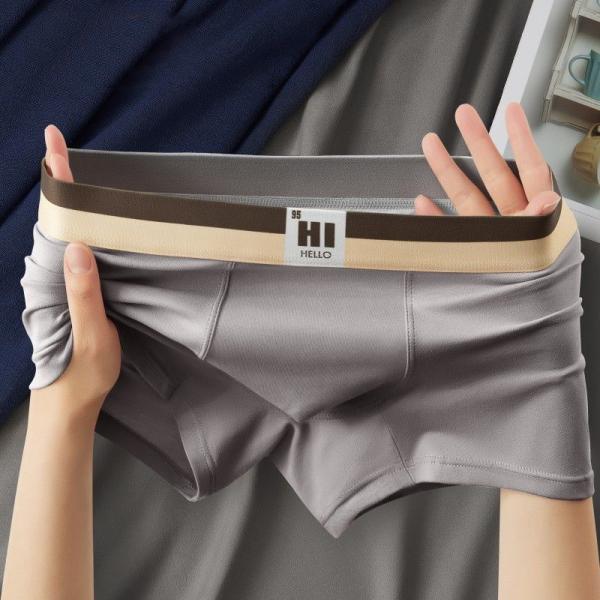 Summer thin ice silk men's Underpants , flat corner pants, antibacterial, breathable, seamless, men's youth loose four corner shorts, trendy