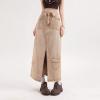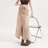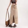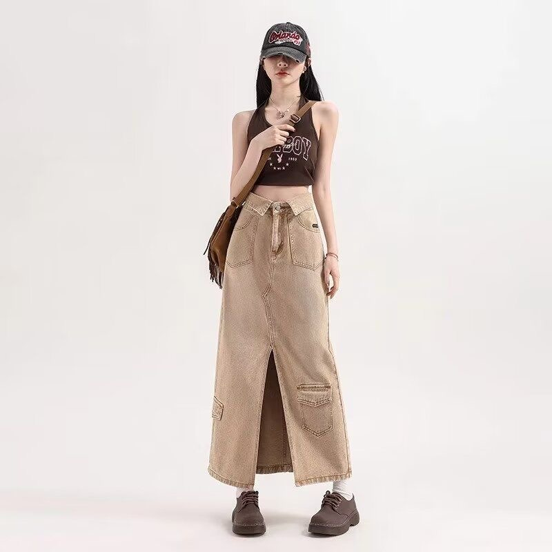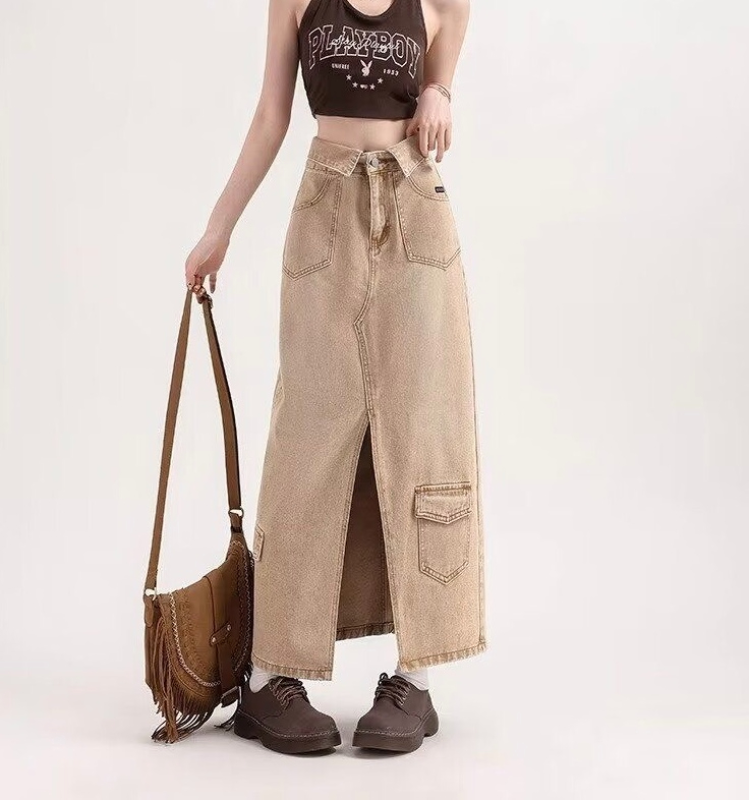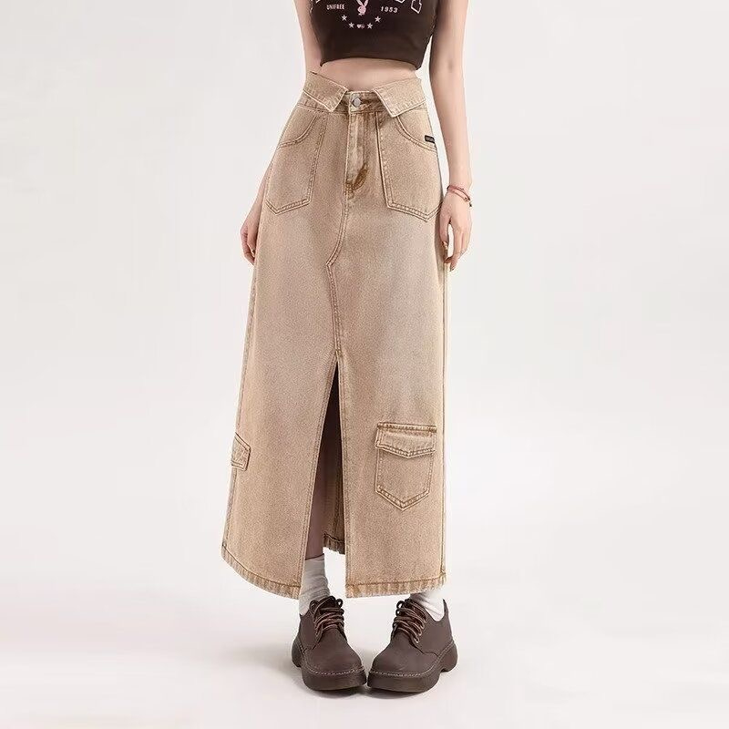 This high-waist denim skirt is cut in an A-line, which cleverly corrects the problem of wide hips and thick legs. The small slit design on the side reveals the skin, lengthening the leg lines and making you look taller. The selected stretch denim fabric is soft, breathable and not tight, and it is comfortable to wear in spring and summer. The khaki color is versatile and can be matched with sweaters, T-shirts or shirts. It is full of temperament for commuting and dating! The invisible zipper + hidden button on the back waist doubles as insurance, making it easy to put on and take off.