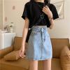 This denim skirt features a high-waist A-line cut, which is slimming and hip-lifting, visually lengthening the leg lines, and easily showing a slim waist. The three-dimensional hip-wrapping design fits the body, and the slightly wide hem makes you look thin and hide your flesh. Selected stretch denim fabric is soft and comfortable without being tight, allowing for free movement. The simple retro washed color is versatile and can be paired with a T-shirt, shirt or short top, making it easy to wear for commuting, dating, shopping and many other occasions. The classic denim style can be worn in all seasons, making you fashionable and confident!