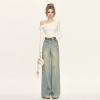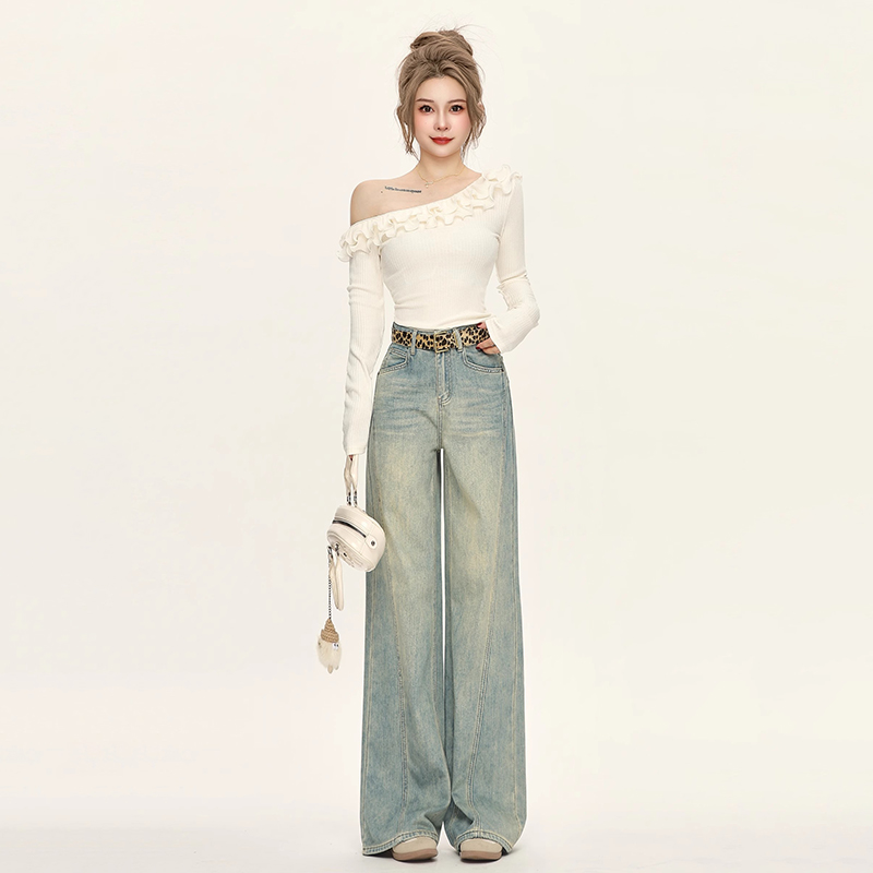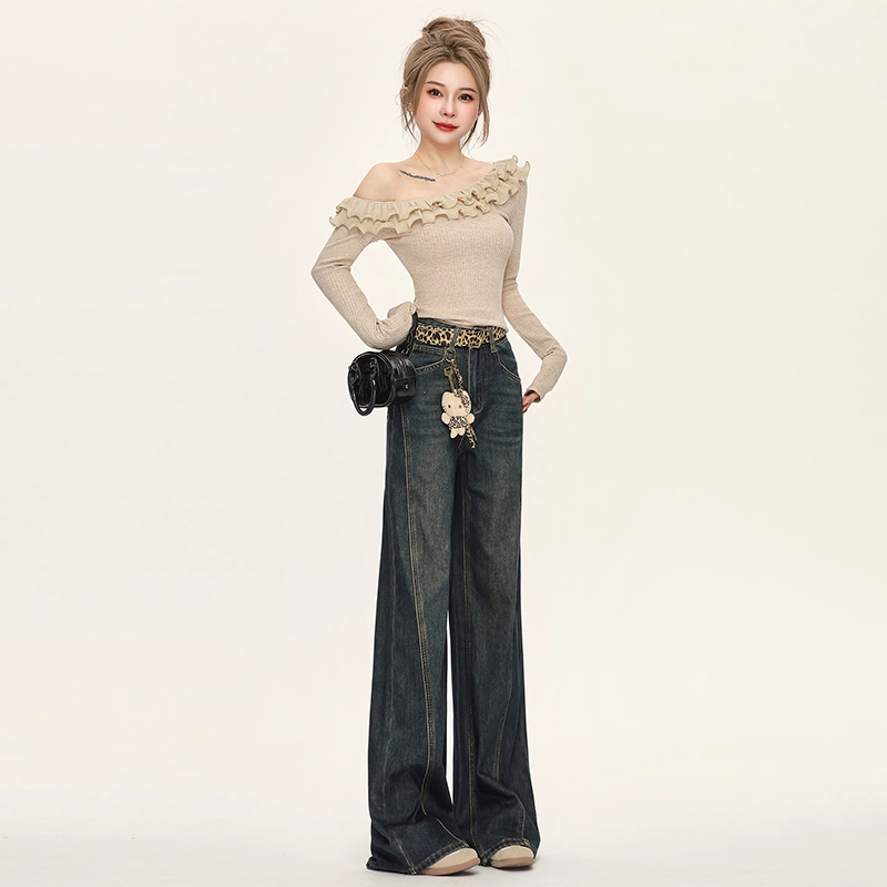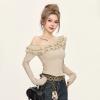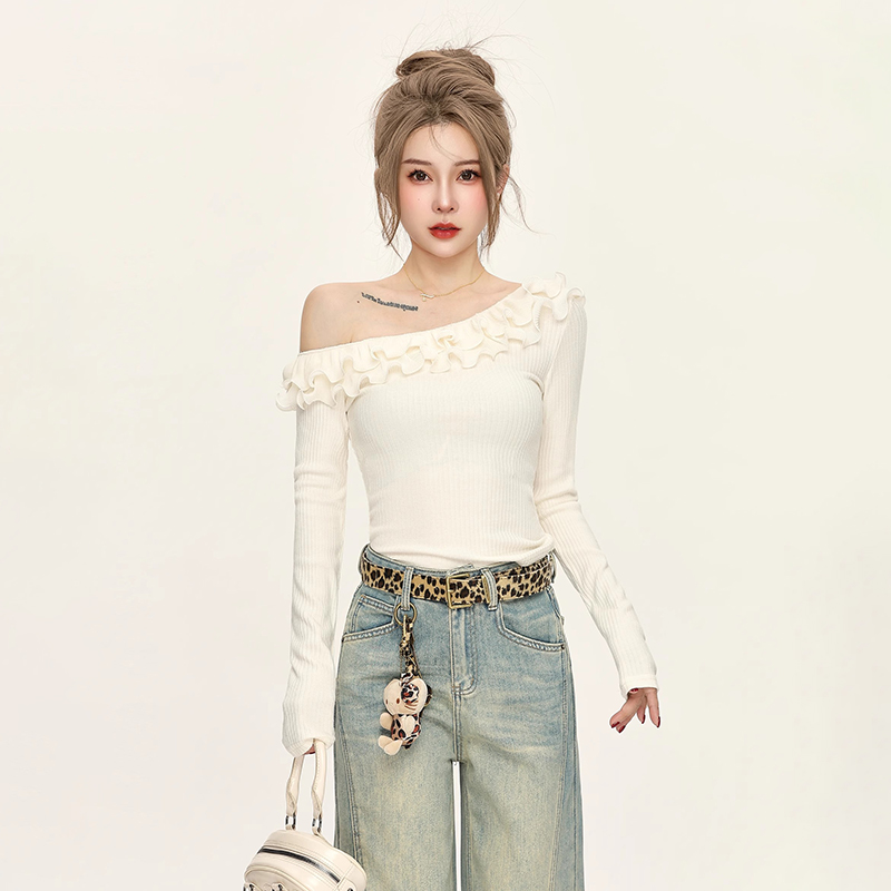 Dangerous and charming off-shoulder design! One-sided off-shoulder tailoring + three-dimensional lotus leaf lace, pure desire index is directly maxed out ~ Wearing a leather skirt with a nightclub = dark hot girl, wearing a coat with a date = pure and sexy, this piece will make you beautiful from October to next spring!