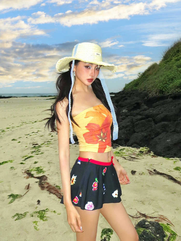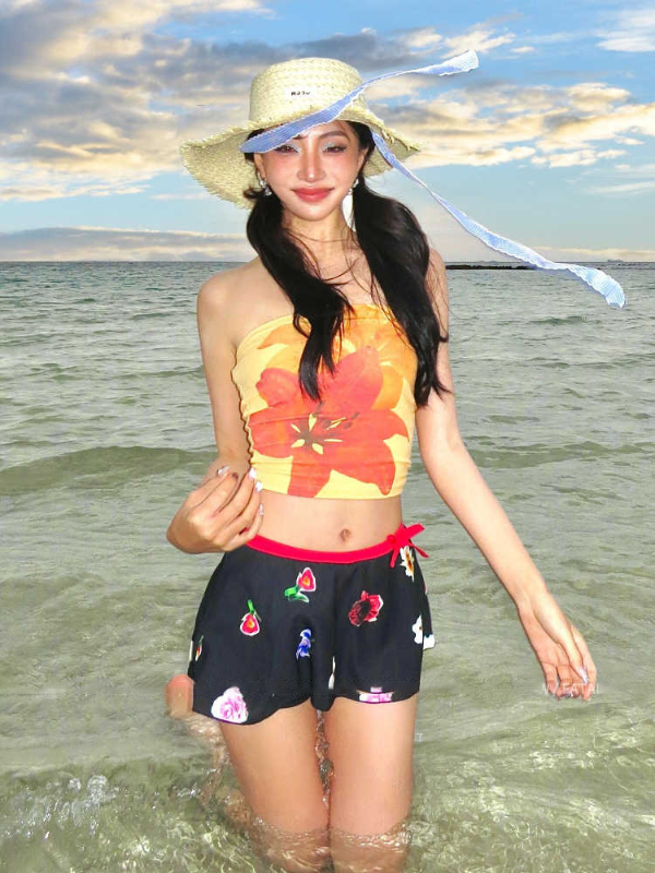 2025 New Women's Floral Bandeau Crop Top. Features vibrant big - flower print, strapless design to highlight collarbone & neckline, sexy yet stylish. Skin - friendly & breathable fabric, perfect for beach vacations or daily wear. Short cut flatters the waist, easily creating a chic summer look.