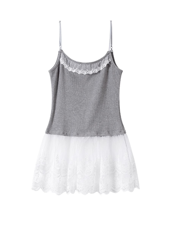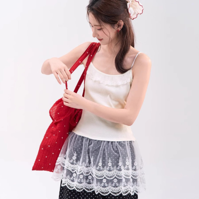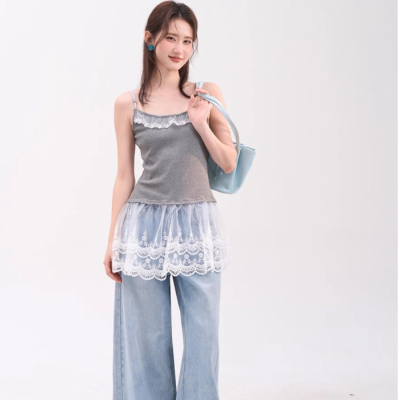 Korean pure and sexy ceiling! Exquisite lace + spaghetti strap design, revealing the beautiful clavicle and back, sexy but not vulgar. Short slim cut with high waist bottoms, visually lengthens the legs, and small people can also wear a perfect body~