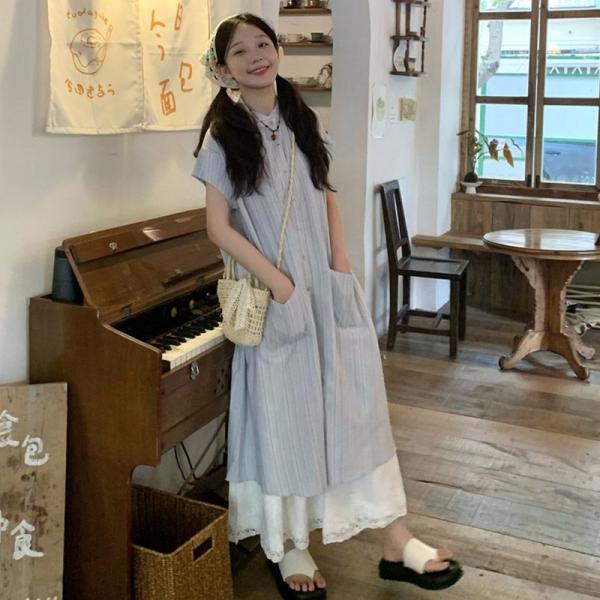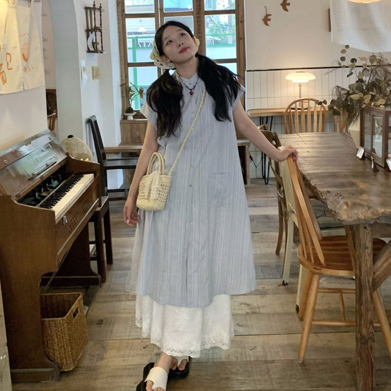 The light blue stripes + sleeveless design creates a fresh and literary atmosphere, suitable for a variety of scenes, and easily creates a sense of relaxation.
