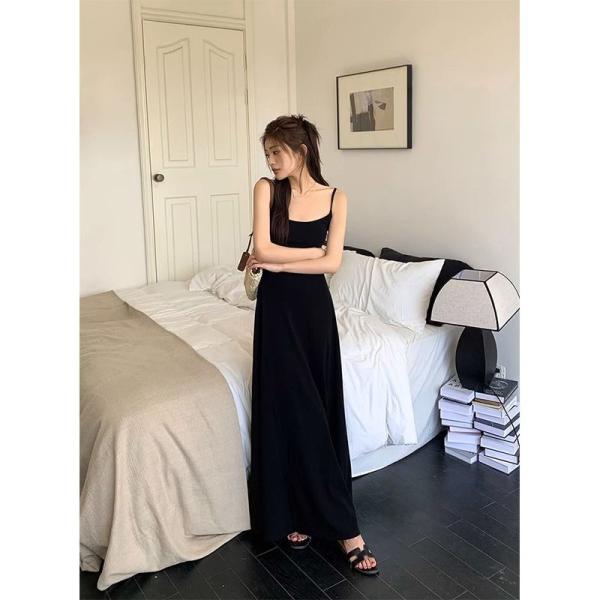 经典黑色吊带长裙,简约吊带设计,勾勒肩颈线条,自带性感氛围。修身剪裁贴合身形,显瘦又显气质,长款裙摆增添优雅感,日常出街、约会都适配,搭配草编包,轻松打造法式松弛美~