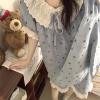 Sweet Korean style, large lace lapel, lace cuffs and hem, fresh bow print, full of girlishness.