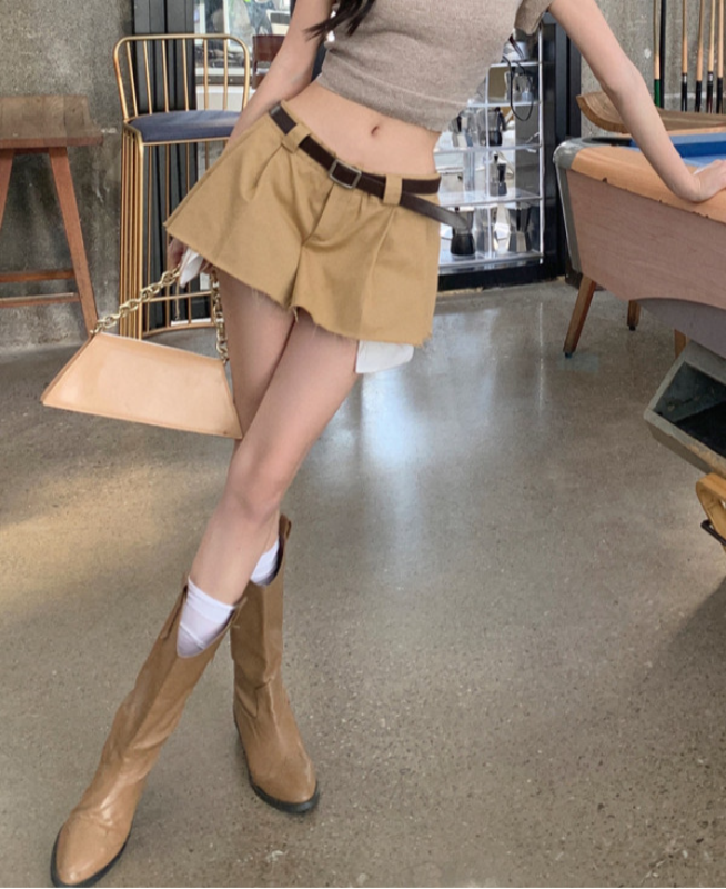 A must-have high-waisted A-line skirt for hot girls. The dark grey color brings out a cool vibe. The belt is used to precisely define the curves, optimize the body proportions, and maximize the effect of making the legs look longer. The skirt is neat and does not pick the hips. It can be worn with a short top for a street style. Paired with long boots and a chain bag, it easily creates an American retro & sweet cool look. It is the perfect choice for going out and making a splash.