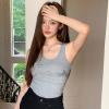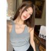 American retro style gray letter print vest, short and slim design, outlines the graceful figure, and exposes the navel to show a little sexy . The sleeveless cut releases the shoulder and neck lines. It is fashionable and eye-catching when worn alone in daily life, and it is also colorful when worn as an inner layer. It is suitable for shorts and skirts, and can easily create a hot girl/casual style. It is a versatile king that is a must-have in the summer wardrobe.