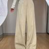 The wide-leg cut is a highlight of this pair of pants. The loose trouser legs give your legs plenty of room to move, allowing you to say goodbye to the feeling of being restrained and enjoy comfort and freedom. At the same time, the wide-leg design cleverly modifies the shape of your legs. Whether you have slender legs or slightly fleshy legs, they can look straight and slender under its contrast. The floor-length trousers add a bit of casualness and unrestrainedness to this pair of pants. When walking, the trouser legs lightly sweep the ground, bringing out an inadvertent sense of fashion, just like a model on the catwalk, full of aura.