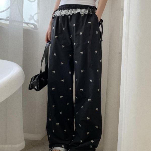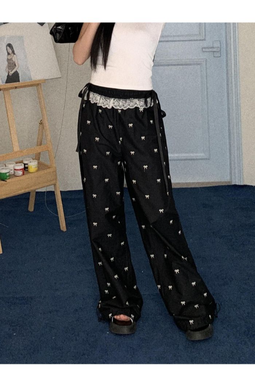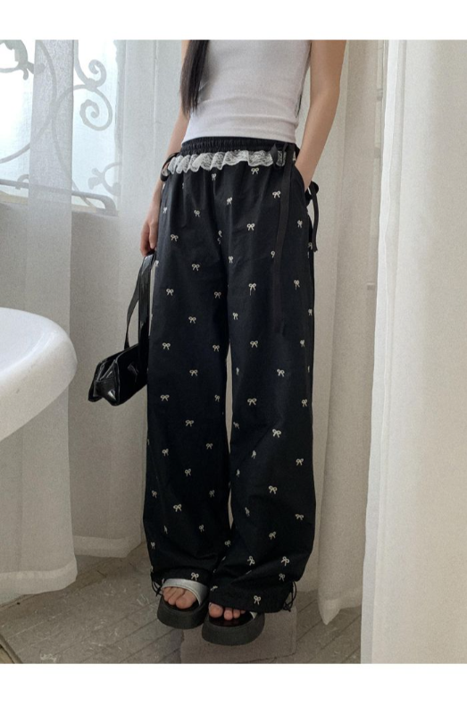 Bowknot wide-leg pants for women, sweet girl style, 2025 new summer thin loose casual pants, slim long pants