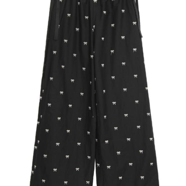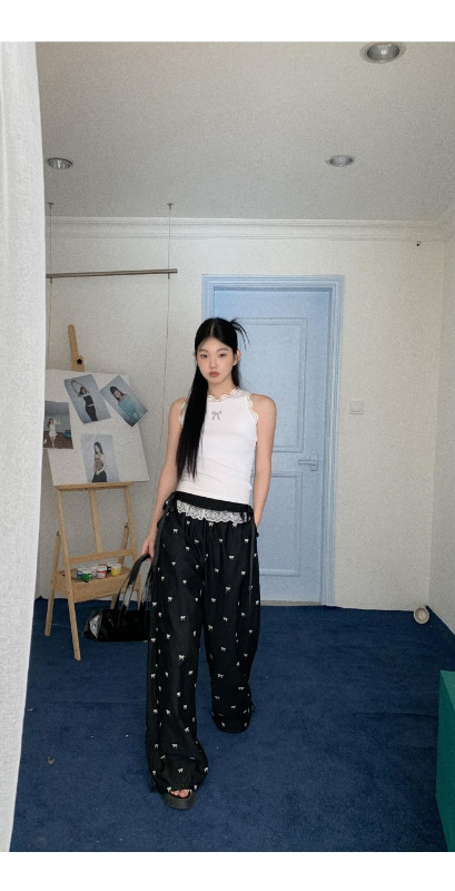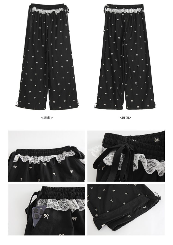 Sweetness is coming! This pair of wide-leg pants with bows is a favorite in the fashion world. The wide-leg version can be called a "modifying artifact" for leg shape, which cleverly covers the flaws on the legs and easily creates straight and long legs, making walking casual and comfortable. The bright bow, or tied around the waist, is like a jumping note, instantly adding a playful and sweet atmosphere to the overall shape; or decorated on the side of the pants, it is unique and highlights a unique personality. Selected comfortable fabrics, skin-friendly and breathable, whether it is daily outings or romantic dates, wearing it can easily make you the focus, and easily control sweetness and fashion.