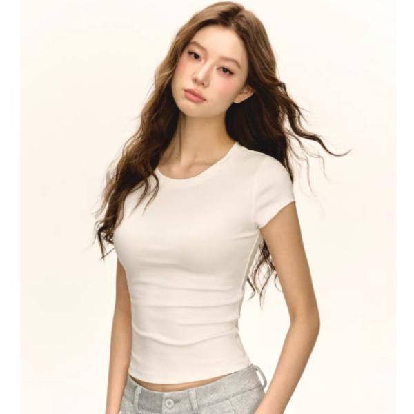 American retro hottie solid color short-sleeved T-shirt for women 2025 summer new slim fit tops