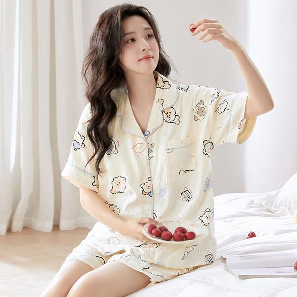 Breathable Cotton Pajamas Set Women Summer - Oversized Sleep T-shirt with Shorts Loungewear