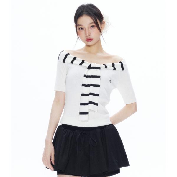 [A must-have for hot girls] Striped contrasting one-shoulder top Slim-fitting short-sleeved T-shirt Slim-fitting versatile bottoming shirt for women