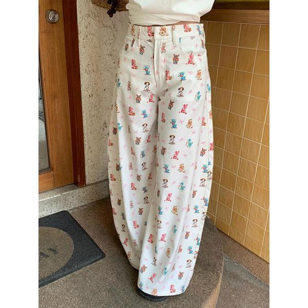 New Arrival Vintage Animal Print Pants - High Waist Wide Leg Trousers with Cute Bow Details, Summer Lightweight Streetwear