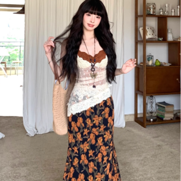 A must-have for hot girls | Lace fake two-piece camisole top | Sexy short style for pure desire | A versatile and slim outerwear base shirt