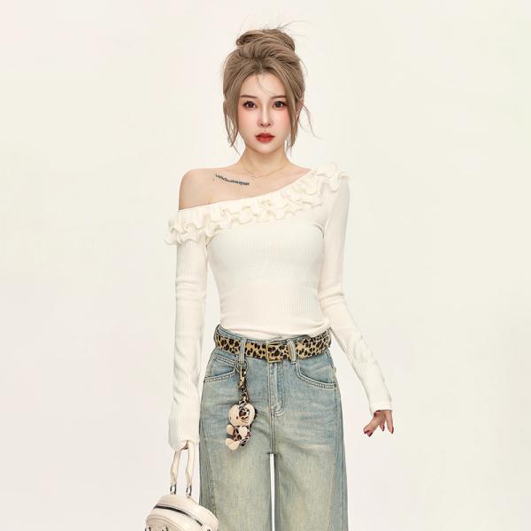 [A must-have for hot girls] Striped contrasting one-shoulder top Slim-fitting short-sleeved T-shirt Slim-fitting versatile bottoming shirt for women