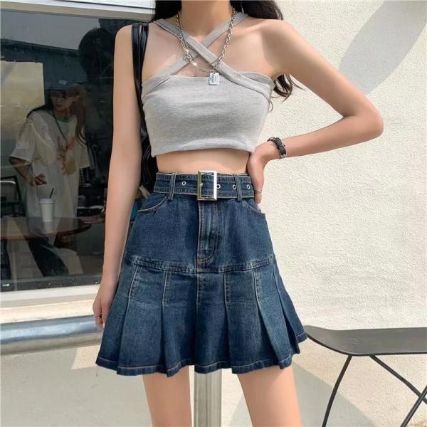 [Y2K Hot Girl] New summer high waist denim skirt Retro A-line pleated skirt Slim and cool niche skirt