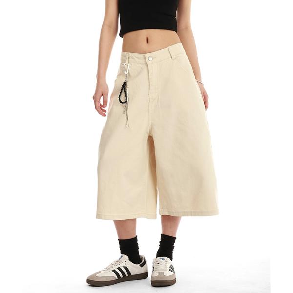 2025 New Women's Retro Denim Cropped Pants | Elastic Waist Loose Pants | Street Hip Hop Wide Leg Shorts | Distressed Hem