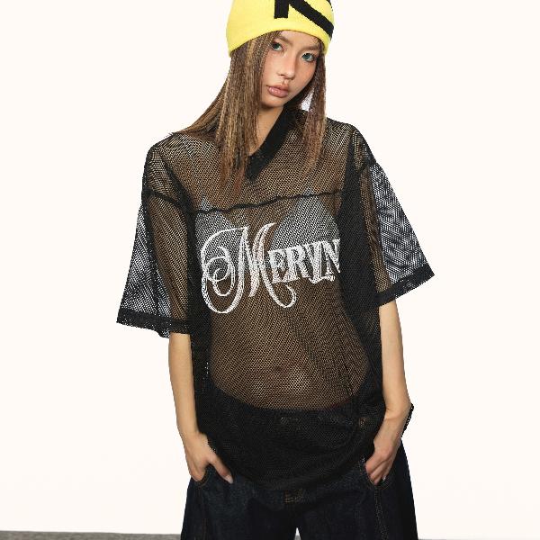 Distressed Lettering + See-Through Mesh | Genderless Loose Fit(#Y2K Aesthetic)